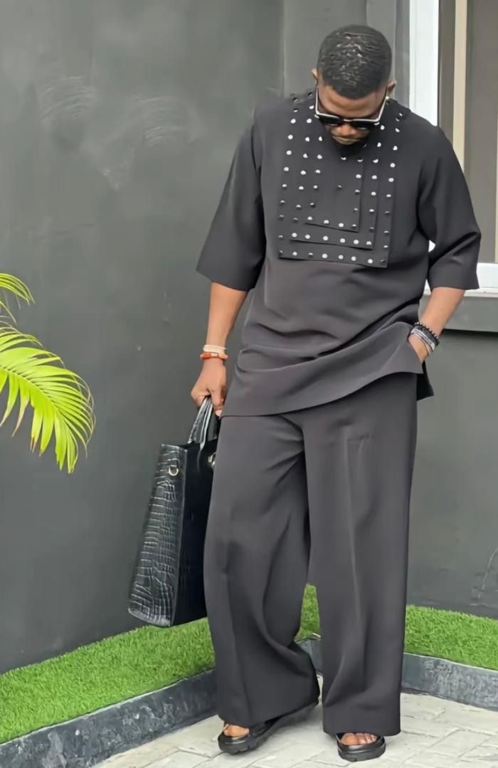 The Epitome of Style: Black Studded Two-Piece Senator Wear Outfit