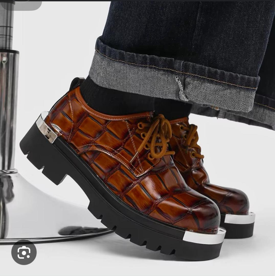 - Striking Crocodile Embossing: The rich, glossy brown faux leather upper boasts a detailed crocodile texture that exudes luxury and class. This unique pattern offers an exotic look without the premium cost of genuine exotic skins.